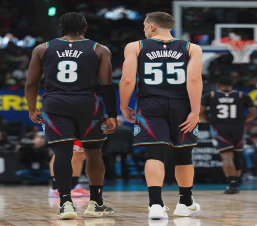 2024-25賽季,活塞開始崛起,常規(guī)賽44勝38負(fù)比前一年多贏30場(chǎng)?;钊詵|部第六的身份打進(jìn)季后賽,最終被尼克斯4-2淘汰。2025年夏天,活塞想跟馬利克-比斯利續(xù)約,但他深陷“賭球風(fēng)波”,活塞立刻以3年4800萬美元簽下鄧肯-羅賓遜。