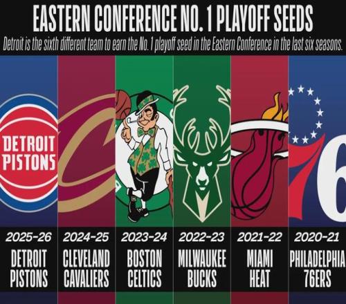 最近六個(gè)賽季,東部第一由六支不同的球隊(duì)輪莊:76人、熱火、雄鹿、凱爾特人、騎士和活塞。兩年之前,也就是2023-24賽季,活塞遭遇了28連敗,創(chuàng)造NBA單賽季連敗紀(jì)錄。當(dāng)時(shí)活塞常規(guī)賽戰(zhàn)績(jī)14勝68負(fù),全聯(lián)盟倒數(shù)第一。