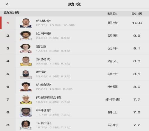 本賽季坎寧安為活塞打了61場(chǎng)比賽,場(chǎng)均出戰(zhàn)34.4分鐘,得到24.5分5.6籃板9.9助攻1.5搶斷0.9蓋帽3.7失誤,三項(xiàng)命中率:46.1%,34.6%,81.4%。場(chǎng)均助攻高居聯(lián)盟第二,僅次于約基奇的10.8次,可惜坎寧安無緣常規(guī)賽評(píng)獎(jiǎng)。