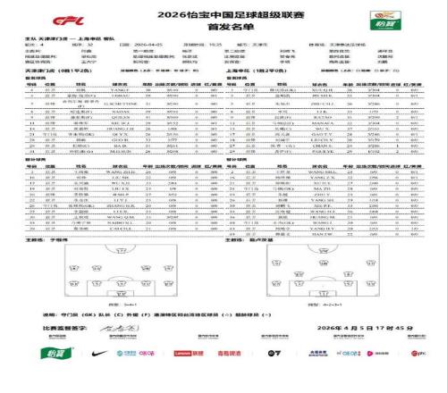 北京時間4月5日19:35,中超第4輪繼續(xù)進行,上海申花做客天津泰達足球場挑戰(zhàn)天津津門虎,本場主裁判為何鑫,VAR裁判為梁松尚,賽前雙方首發(fā)出爐。