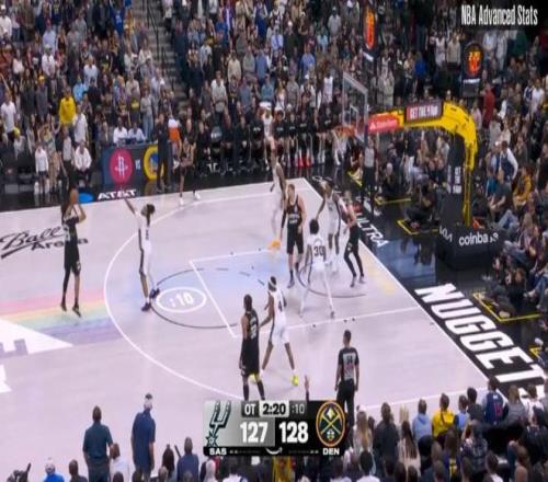 常規(guī)賽,掘金主場136-134加時戰(zhàn)勝馬刺。