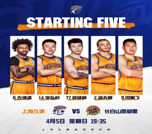 本場(chǎng)比賽,上海男籃派出了由古德溫、李弘權(quán)、張鎮(zhèn)麟、洛夫頓、閆鵬飛組成的首發(fā)陣容。