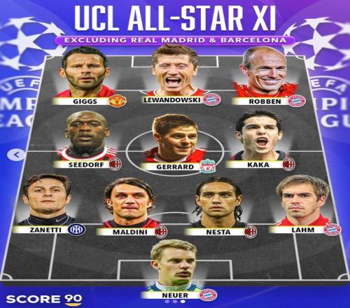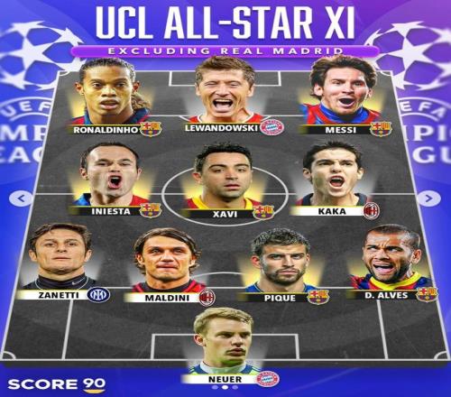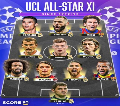 北京時(shí)間4月6日,Score90列出了自1992-93賽季改制以來歐冠的全明星陣容,C羅和梅西領(lǐng)銜,皇家馬德里占據(jù)8席。