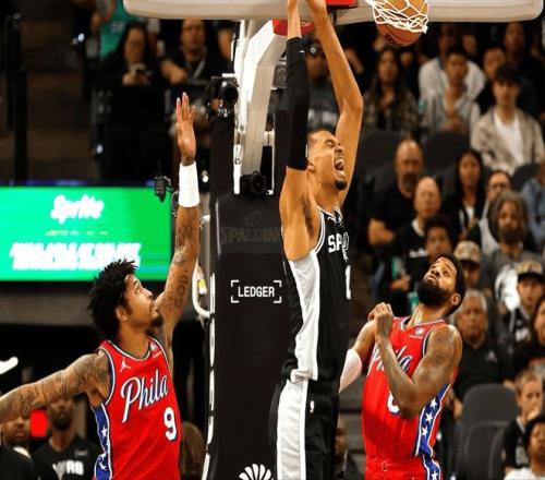 所以文班亞馬在恩比德頭上肆意妄為,更別提恩比德這家伙是一位有著美國、法國和喀麥隆三重國際的球員。恩比德的打法,算是NBA這幾年最吃香的,會造犯規(guī),能投三分的空間型內線。但看到文班亞馬,才知道什么是劃時代的天賦球星。進攻戰(zhàn)術有問題,把球往天上拋就行;防守端有漏洞,文班亞馬往內線一站就是防守體系。不過,在一次反擊和喬治爭搶球權的過程中,兩人發(fā)生了碰撞,文班亞馬遭遇肋部挫傷,很快返回更衣室接受進一步檢查。好在不久后再次返場,不過在出場時間來到16分鐘后,還是因為不舒服被換下場,馬刺很快宣布文班亞馬退出比賽。