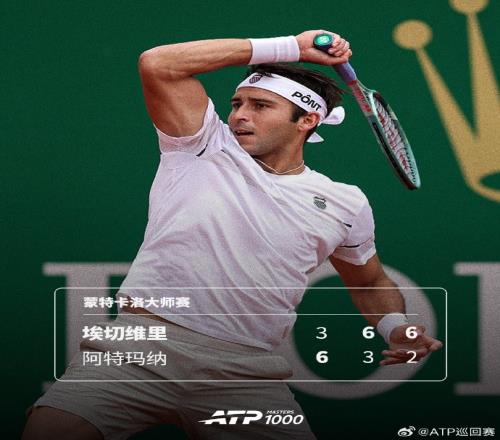 將戰(zhàn)阿爾卡拉斯!埃切維里21阿特瑪納,首進(jìn)蒙特卡洛大師賽16強(qiáng)