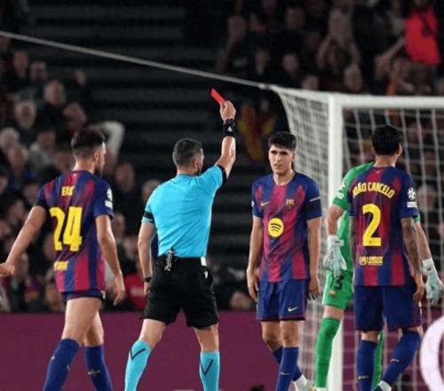 這就是歐冠的殘酷。第42分鐘,小西蒙尼形成單刀,庫(kù)巴西身后犯規(guī)。裁判先是黃牌,VAR介入后直接改紅牌。19歲的巴薩后防核心就這樣結(jié)束了比賽。他成為歐冠歷史上首位20歲前兩次被罰下的球員,上次是對(duì)本菲卡,這次是在諾坎普。