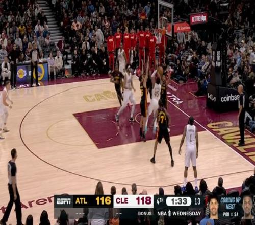 ——剩下1分32秒前,騎士118-116領(lǐng)先2分,米切爾造犯規(guī),兩罰全中