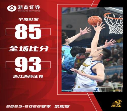 CBA常規(guī)賽第37輪,浙江浙商證券客場迎戰(zhàn)寧波町渥,上半場寧波手感火熱,半場投出了11中7的三分命中率,浙商證券憑借剛剛傷愈復(fù)出的布朗和胡金秋的發(fā)揮緊咬比分,第三節(jié)浙商證券在進(jìn)攻端手感依然不好,被對手再次拉開比分,但第四節(jié)胡金秋和塔克爆發(fā),兩人末節(jié)合砍26分,最終,浙江浙商證券以93-85客場戰(zhàn)勝寧波町渥。
