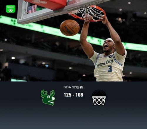 第四節(jié)雄鹿AJ-格林拿下17分,籃網(wǎng)泰森-艾蒂安拿下5分,最終雄鹿125-108戰(zhàn)勝籃網(wǎng)