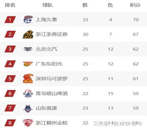 CBA積分榜最新排名!廣東大勝殺回前4:上海穩(wěn)居第1遼寧第9