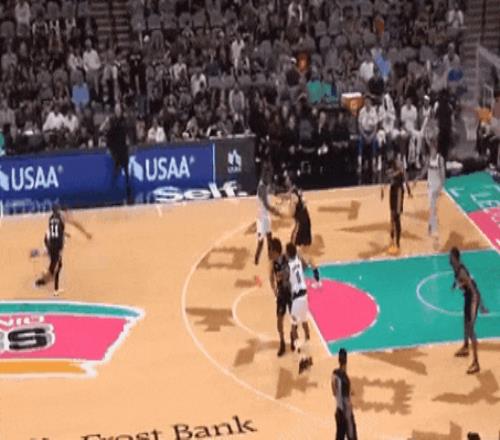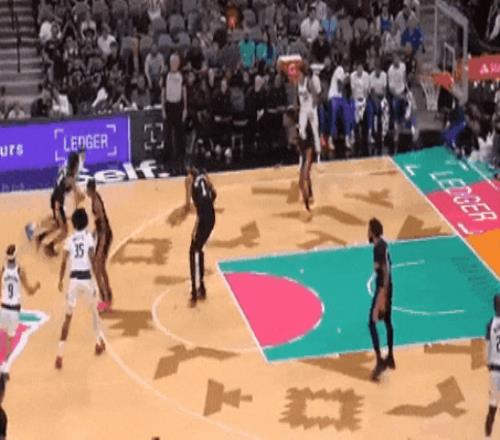 文班今天只2封蓋,但開場就有一個嚇得對面罰球線遲疑投籃的場面。