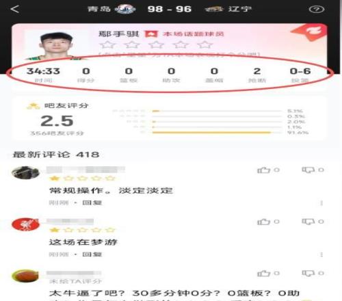 騰訊新聞 《罕見(jiàn)數(shù)據(jù)!鄢手騏出戰(zhàn)34分半0得分0籃板0助攻》