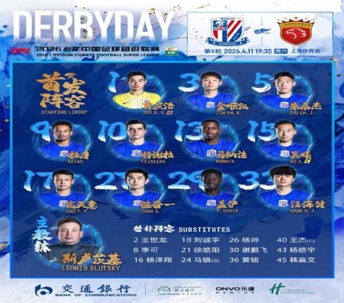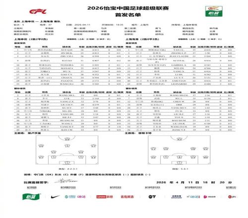 2026中超聯(lián)賽第5輪上海申花vs上海海港首發(fā)名單