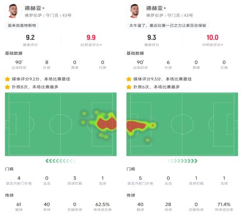 最近兩場比賽,德赫亞先后做出8次撲救和6次撲救,獲得9.2、9.3的評分,幫助佛羅倫薩兩場1-0戰(zhàn)勝維羅納、拉齊奧,目前佛羅倫薩排名意甲第15,還剩6輪已經(jīng)領(lǐng)先降級區(qū)8分,保級形勢一片大好。