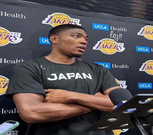 近日,湖人正在備戰(zhàn)季后賽,洛杉磯當(dāng)?shù)赜浾週oJo Media在湖人訓(xùn)練日前往湖人訓(xùn)練場(chǎng)地,據(jù)報(bào)道,八村在接受媒體采訪時(shí),身著日本國(guó)家隊(duì)訓(xùn)練短袖。