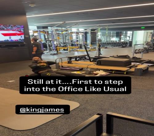 工位自嗨!詹姆斯一邊用泡沫軸放松腰背一邊激情說唱