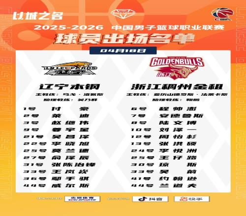 體育播報4月18日宣 今晚19:35,遼寧對陣浙江,賽前雙方公布了本場大名單,遼寧的付豪復出,俞澤辰頂替哈維進入大名單。