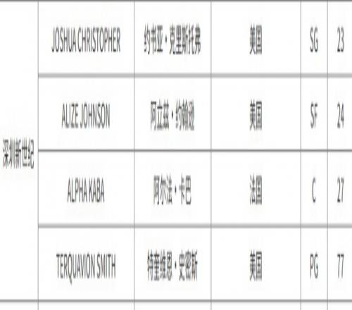 完成這一次換外援之后,深圳男籃的四外援陣容為克里斯托弗、阿立茲·約翰遜、卡巴、史密斯。