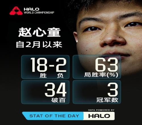 自2月以來,趙心童局勝率63%,打出34桿破百,收獲3個(gè)冠軍。