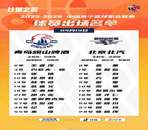體育播報4月19日宣 今晚19:35CBA常規(guī)賽焦點戰(zhàn),青島對陣北京。賽前雙方公布了本場大名單: