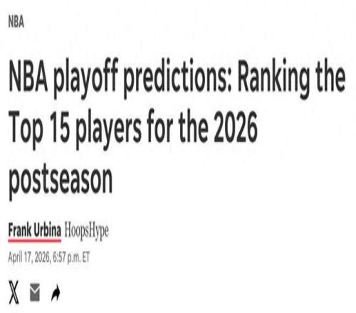 在季后賽正式開打之際,美媒《hoopshype》結合常規(guī)賽表現(xiàn)預測評選出本賽季季后賽15大球星名單,其中火箭杜蘭特第10名,41歲老詹和騎士二當家哈登雙雙落選存在不小的爭議。