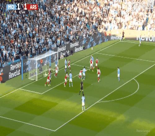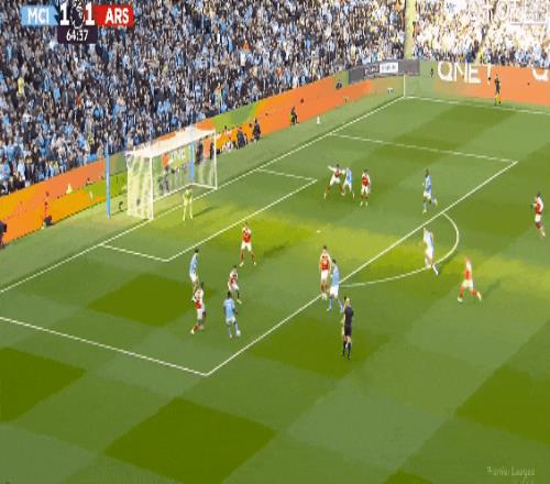 超級(jí)失誤!比賽第18分鐘,多納魯馬出球拖沓,哈弗茨將球擋進(jìn)球門(mén)扳平比分!阿森納1比1曼城。
