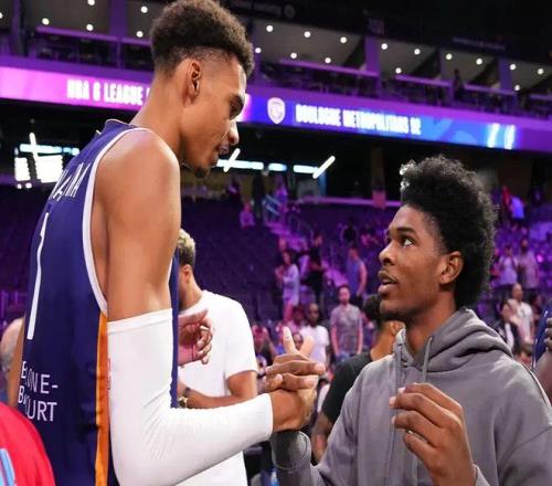 在當(dāng)時(shí),年僅18歲的文班亞馬和亨德森被認(rèn)為是2023年選秀的“絕代雙驕”,這兩場(chǎng)比賽吸引了超過200名NBA球探與高管,以及詹姆斯、保羅等一線巨星到場(chǎng)觀戰(zhàn),且由ESPN進(jìn)行全美直播,熱度遠(yuǎn)超普通季前賽。