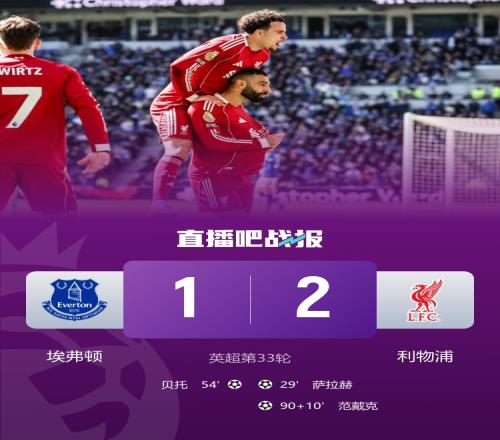 范戴克頭球破門讀秒絕殺,利物浦2-1埃弗頓取兩連勝。