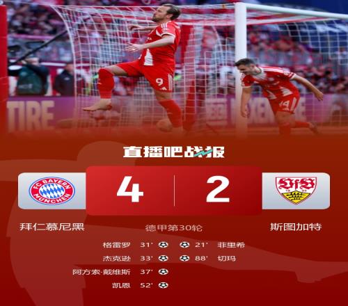 拜仁擊敗斯圖加特,提前4輪衛(wèi)冕德甲冠軍,也獲得了本賽季第2座冠軍獎杯。