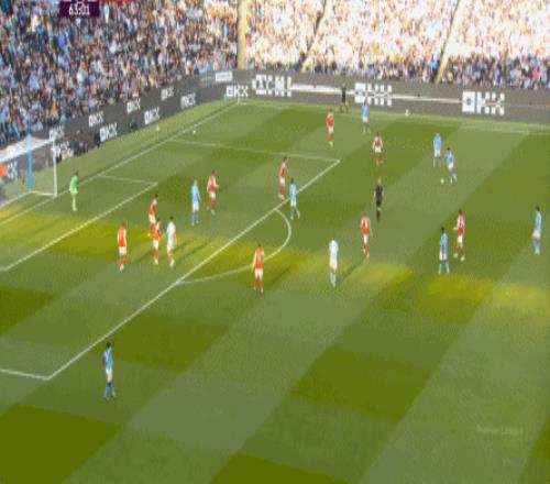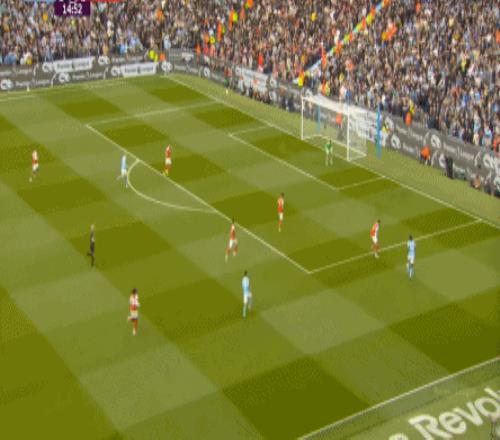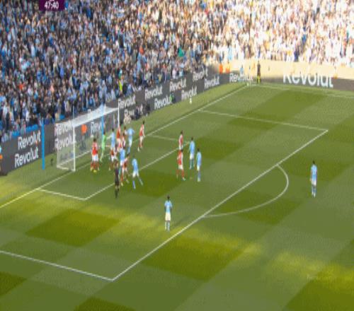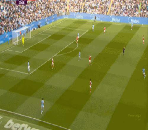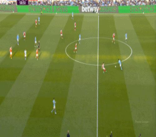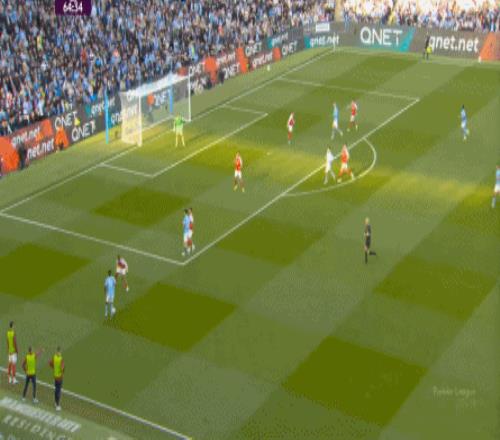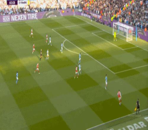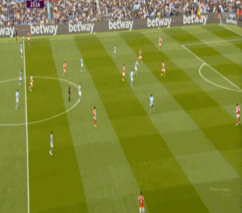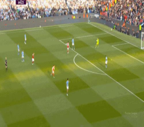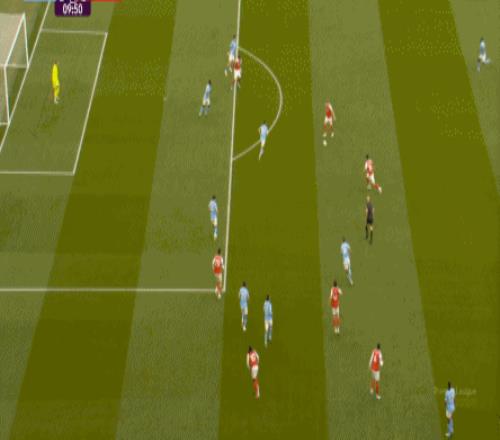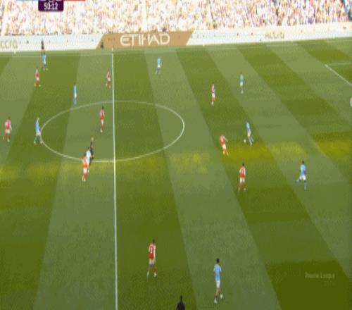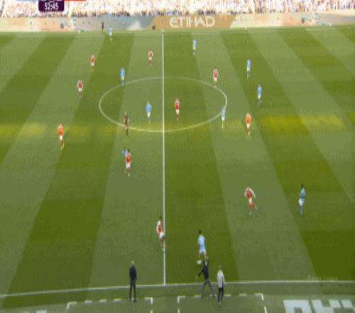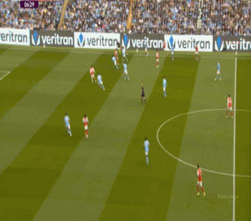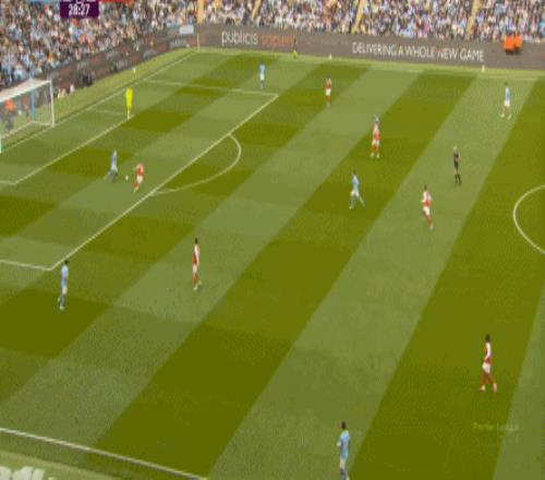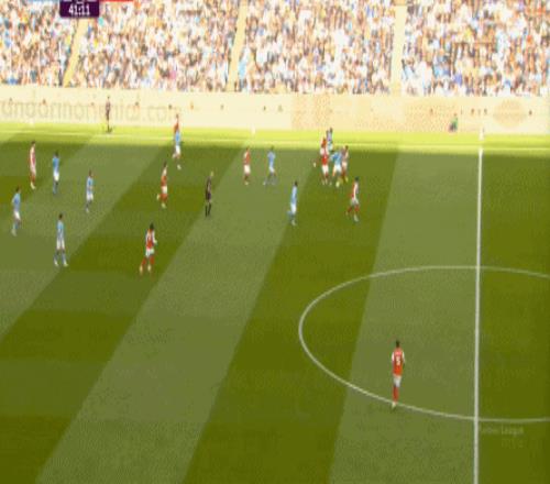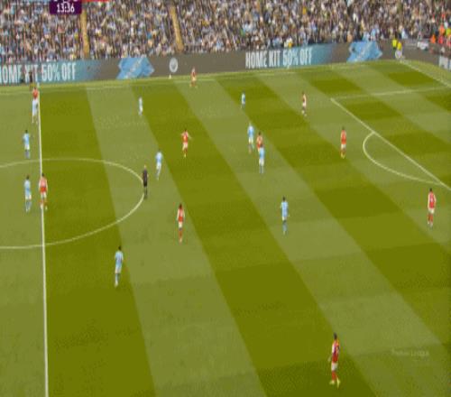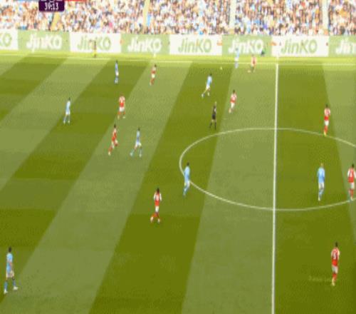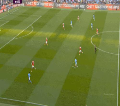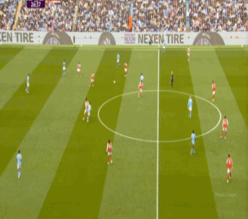 于是,阿森納在前場(chǎng)順利防下了曼城的出球: