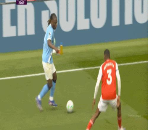 阿森納繼續(xù)在前場(chǎng)進(jìn)行逼搶,繼續(xù)著對(duì)曼城的壓迫態(tài)勢(shì),但第20分鐘這次逼搶,本來(lái)得手,卻在因卡皮耶的腳下出現(xiàn)失誤,這讓曼城看到了打快攻的機(jī)會(huì),阿森納在后場(chǎng)的確只剩寥寥兵力,但塞門約腳下一滑,讓失誤錯(cuò)進(jìn)錯(cuò)出: