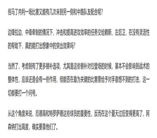 一個(gè)馬丁內(nèi)利,已經(jīng)給前場(chǎng)帶來(lái)了些許活力,但這些活力和效果并沒有到一個(gè)進(jìn)球的份兒上,你可以借此說(shuō)球員能力就是不行,這一點(diǎn)當(dāng)然沒問題,但你如何解決呢?
